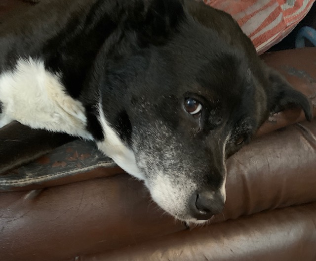 When I was lying on the sofa this morning, reading the paper, sipping coffee, I glanced up at the ceiling. A hook hangs there that Sheldon, my husband, used to hang our dog Sophia’s lactated ringers, bags that hold fluids for people and animals that are dehydrated. Every other day, he would slip the solution on the metal hook and thread an iv into Sophie’s shoulder. When we started to give her fluids at home whenever she saw the bag and the tubes, I would have to herd her to the couch, and lift her up, her body dead weight in my arms while Sheldon set up the medication. Towards, the end, she was on the couch most of the time.